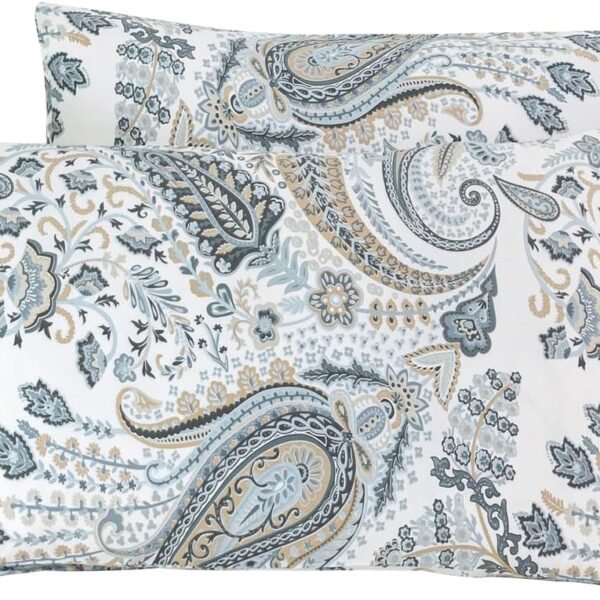 100% Cotton Pillowcases King Size Set of 2 Paisley Floral Patterned Pillow Cases Decorative Envelope Closure Vintage Boho Pillow Covers Bohemian Pillow Protectors (2 Pack, 20 in x 36 in)