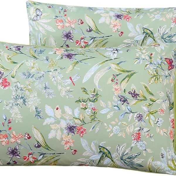 100% Cotton Pillowcases Queen Size Sage Green Garden Floral & Butterflies Printed Pillow Cover 2 Pack, Soft Smooth Cool Envelope Closure Pillow Case Set (Queen, 20"x30")